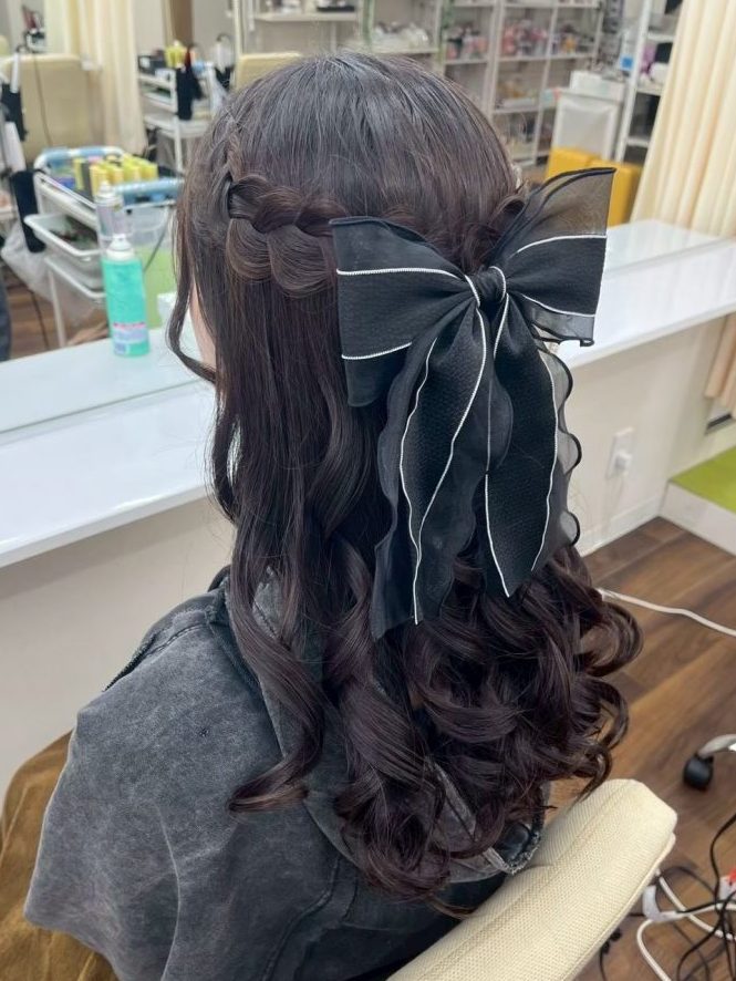 毛先を活かした今流行りのカチモリヘア!!シニヨンの部分をリボンようにもお作りることも出来ます🎀