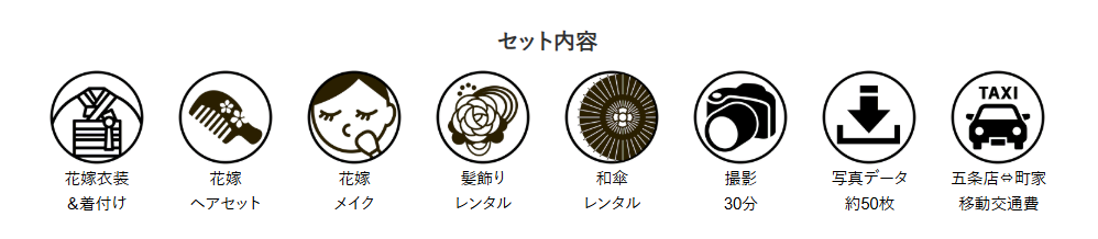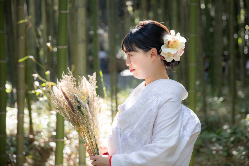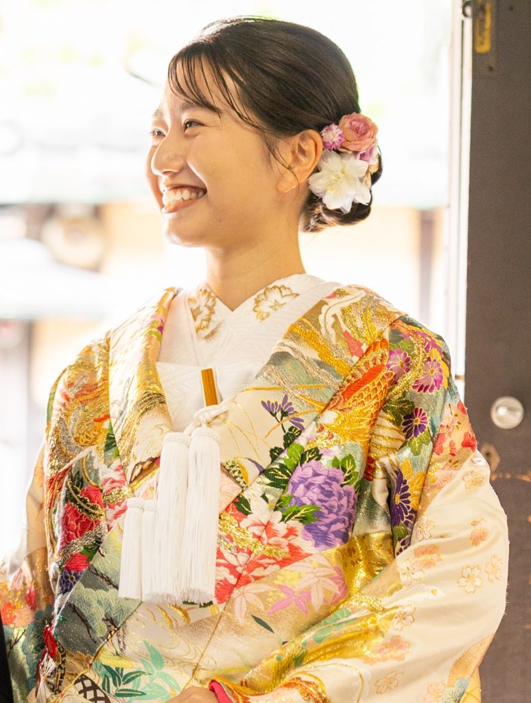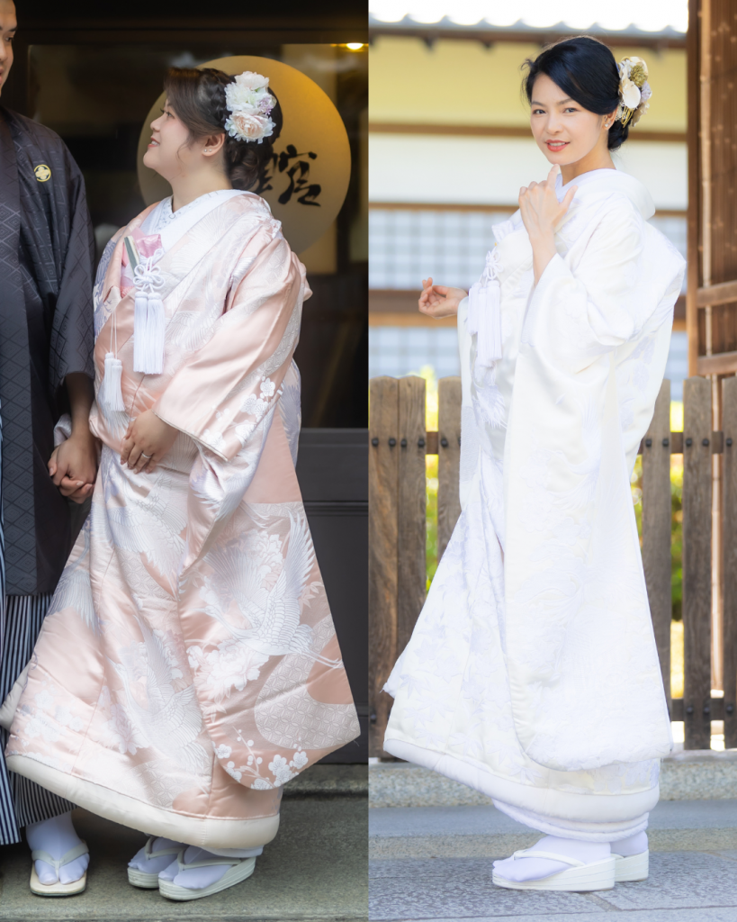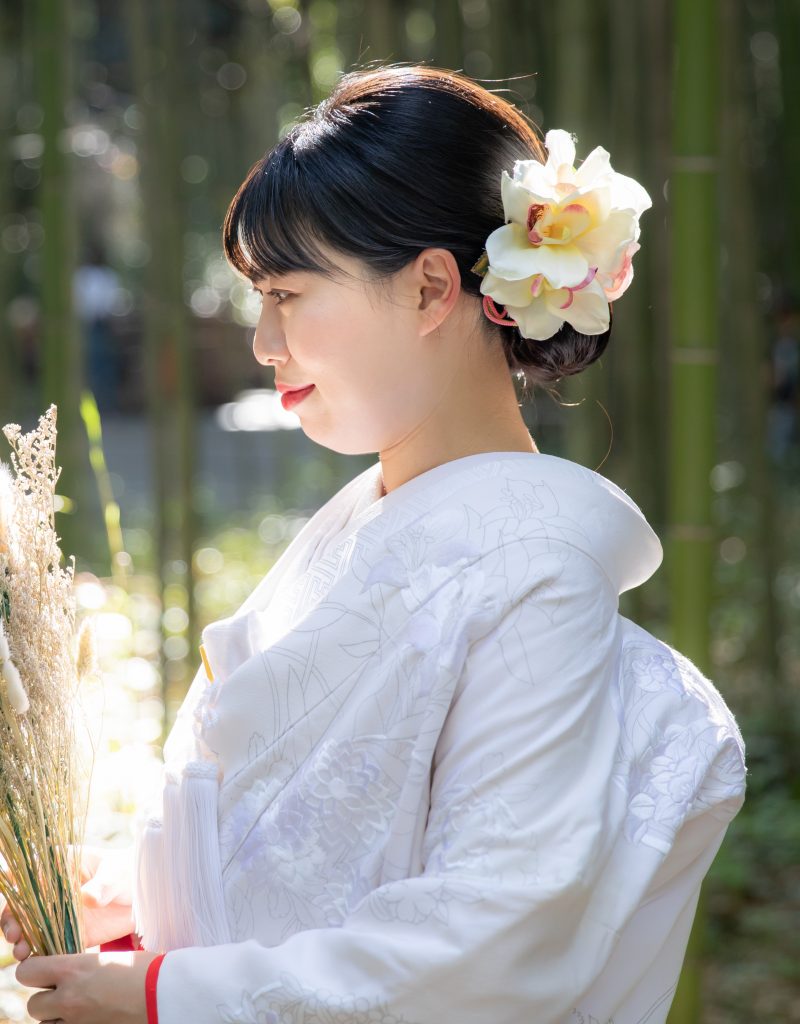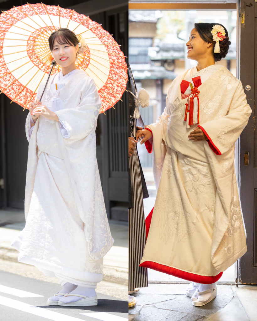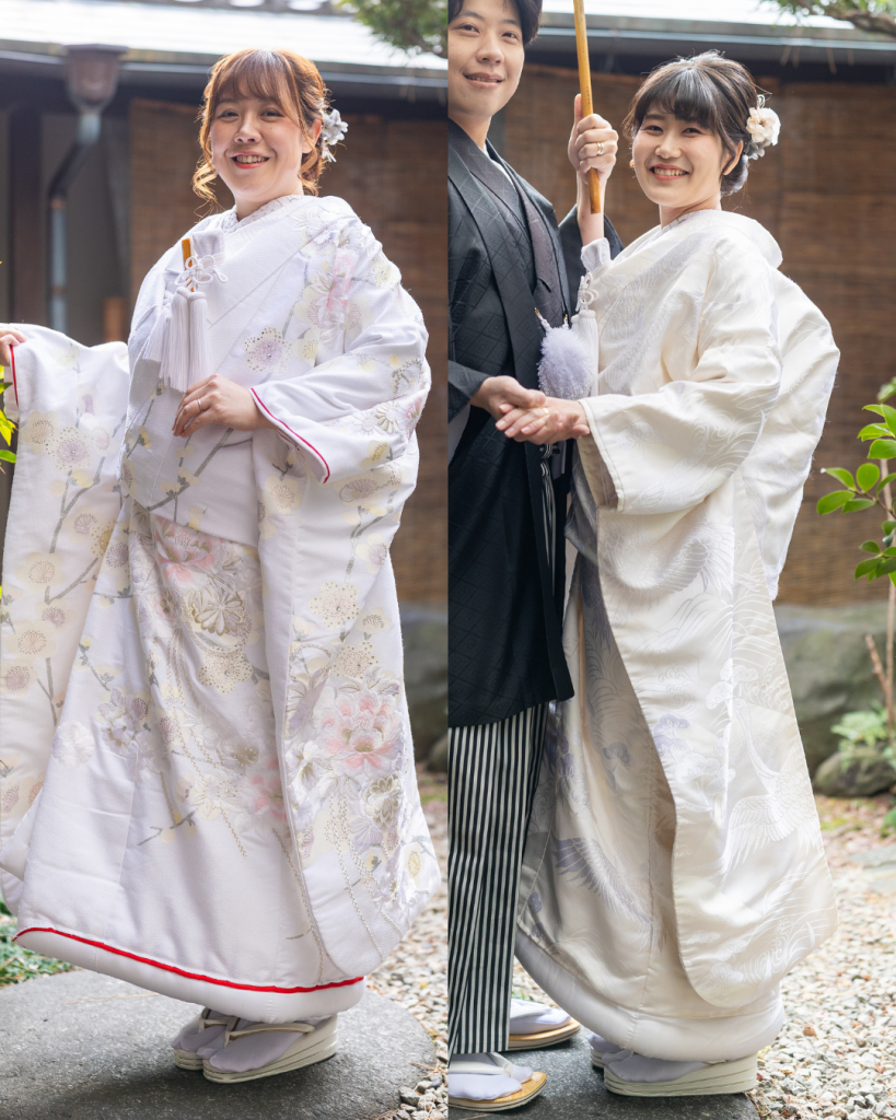 肌着から掛下、小物まで全てを「白」で統一し、神聖、純潔、嫁ぎ先の家風に染まるという意味が込められています。
