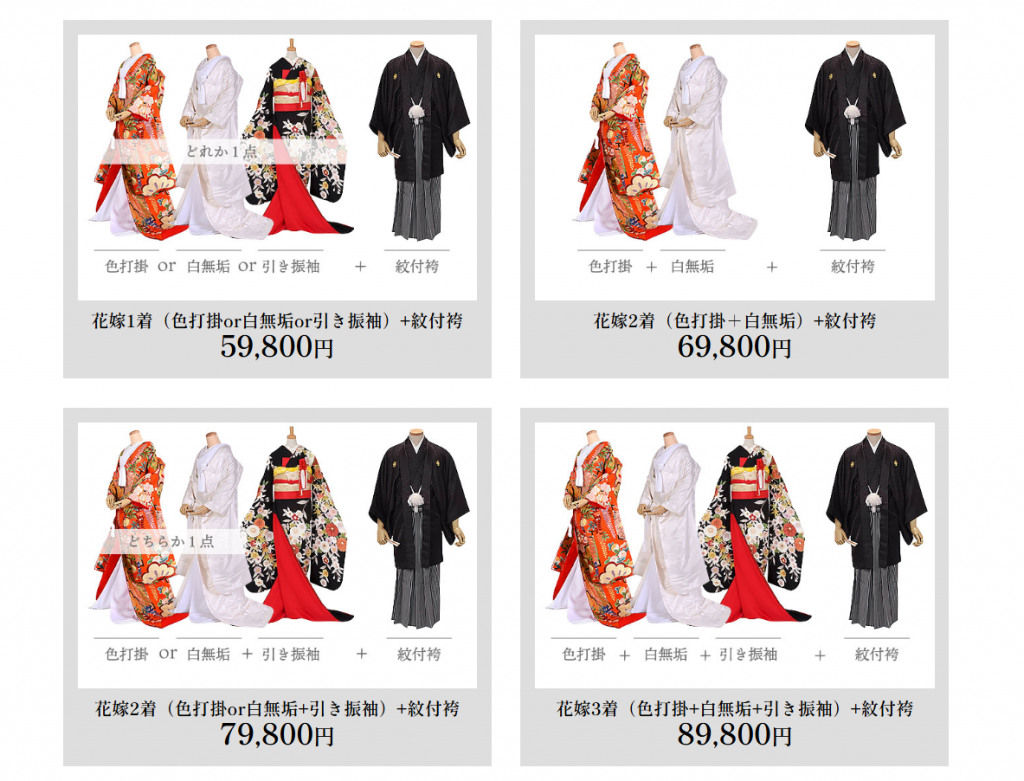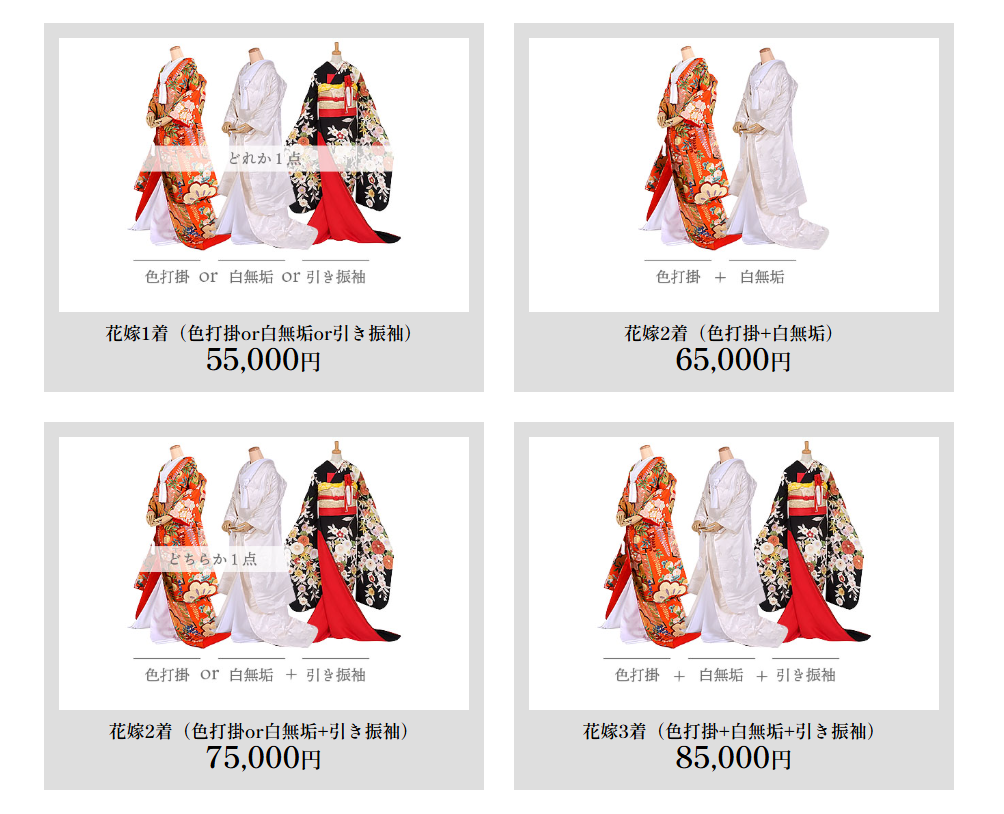 衣装はどのデザインを選んでも均一価格です。