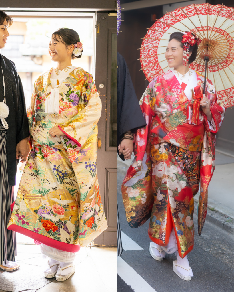 花嫁様は色打掛/白無垢/引き振袖の3種類から好きな衣装をお選びいただけます。