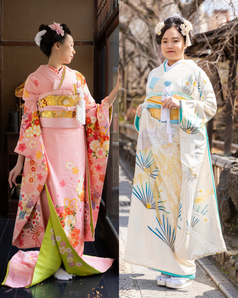 引き振袖(ひきふりそで)は、江戸時代の武家の婚礼衣装が由来の、花嫁が着用する大振袖のことです。