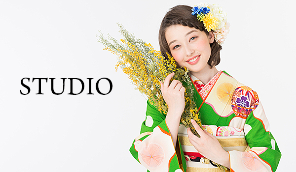 成人式前撮りといえば、定番かつ大人気なのはスタジオ撮影!!様々なバックグラウンドからご撮影頂けます。